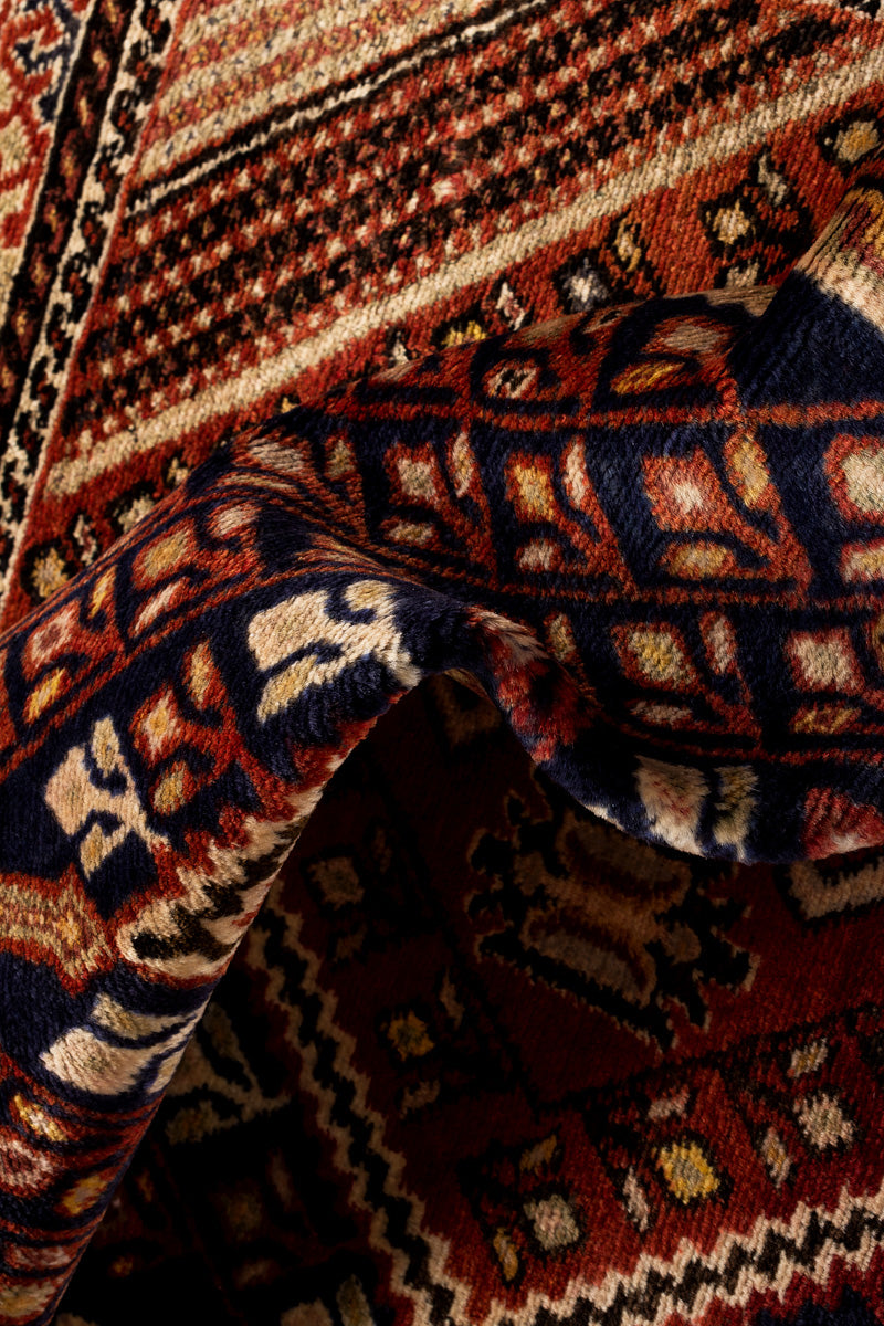 In the area surrounding the city of Kerman, the semi-nomadic Afshar tribe resides. Historically, these nomads lived in northwest, but part of the tribe was relocated to their current area, where carpet manufacturing became a significant industry. Afshar rugs are characterised by their nomadic style and geometric patterns, reflecting the tribe’s rich cultural heritage.