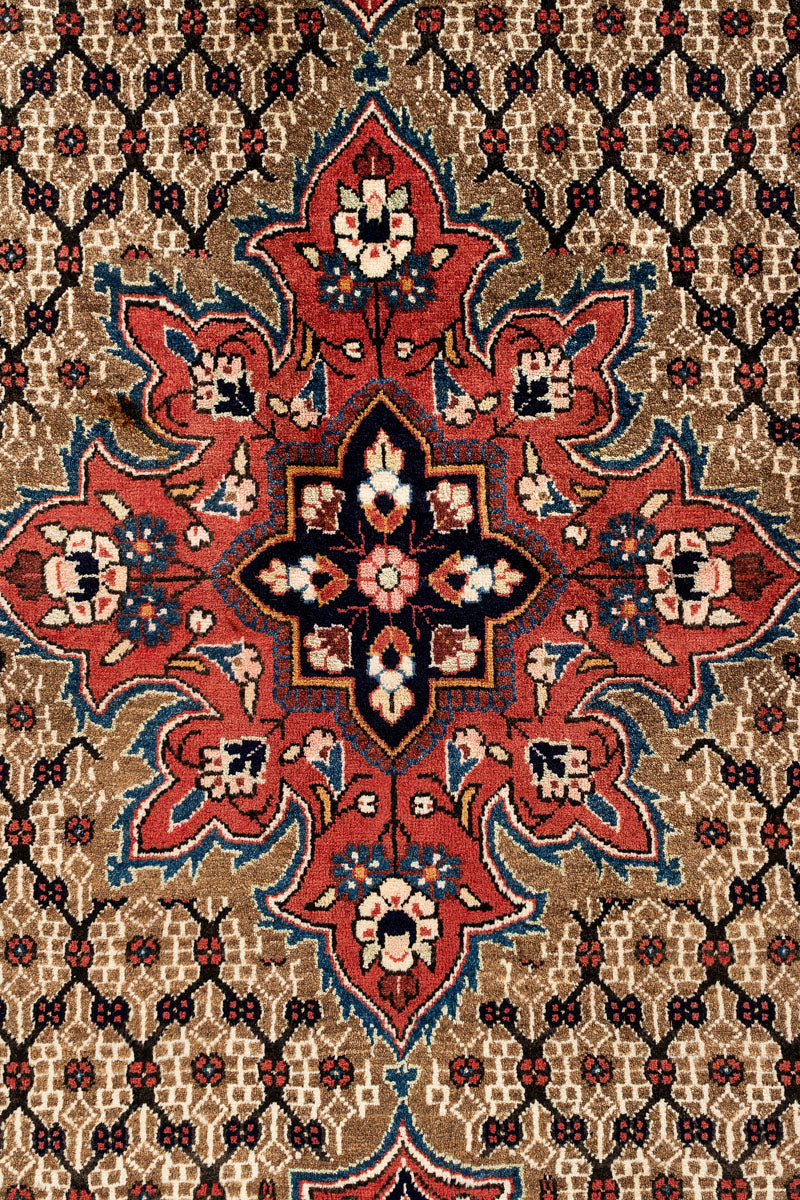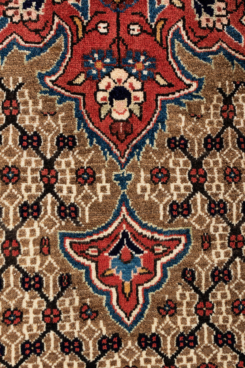 Koliai rugs are woven by the Kurds, known for their exceptional weaving skills. These rugs feature a high pile and a rich colour palette, often showcasing large patterns and geometric figures with somewhat muted tones. The workmanship is robust, resulting in heavy, compact carpets that offer excellent durability.