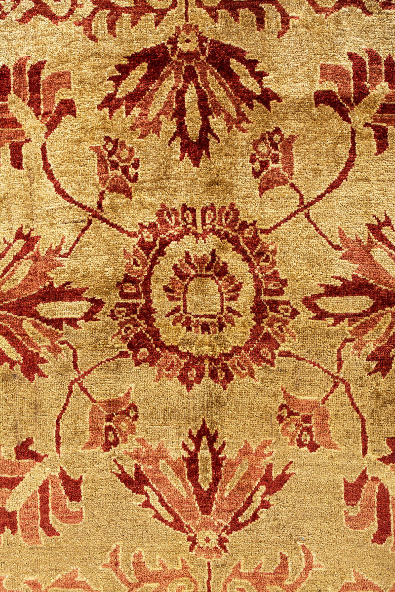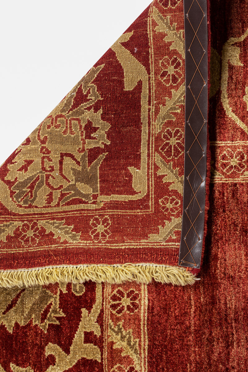 The Lors and Baktiars are two Persian tribal groups that migrate in the Zagros region, north of the Fars tribes. They produce both rugs and flat-woven items. Rugs from the Fars region are known for their vibrant geometric patterns featuring people and small familiar animals. Additionally, pictorial rugs depicting lions are crafted to honor tribal leaders. For Shiraz and Qashqai rugs, the materials typically used include wool for the warp, cotton or wool for the weft, and wool for the pile.
