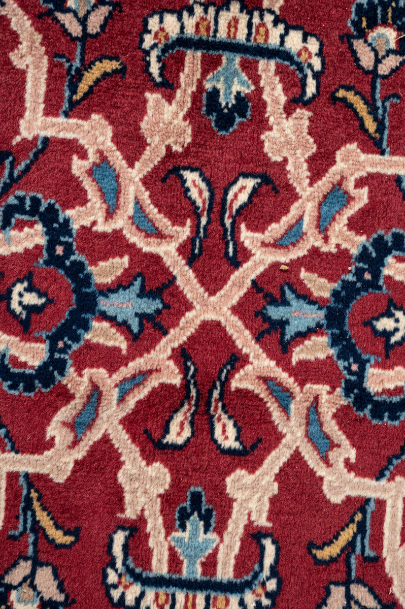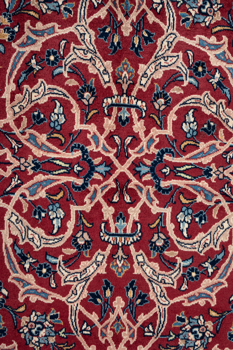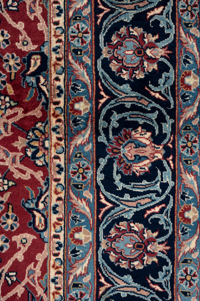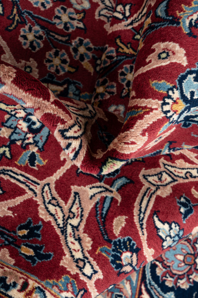 Persian Yazd rugs are celebrated for their fine craftsmanship and beauty. Known for their durability, they are well-suited for high-traffic areas. These rugs often showcase vibrant reds, pinks, and blues, framed by borders in brown, beige, or cream, adding to their visual appeal.