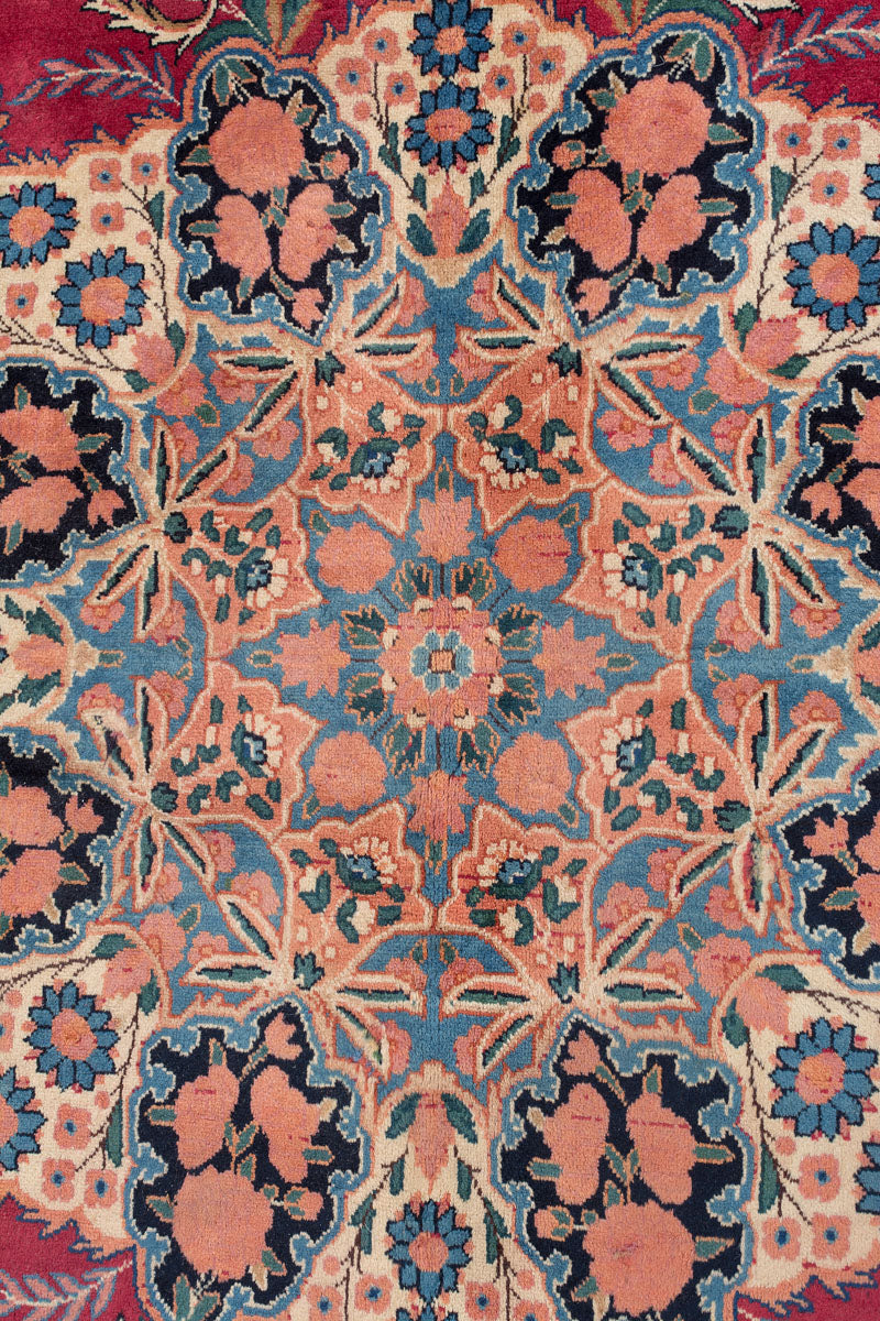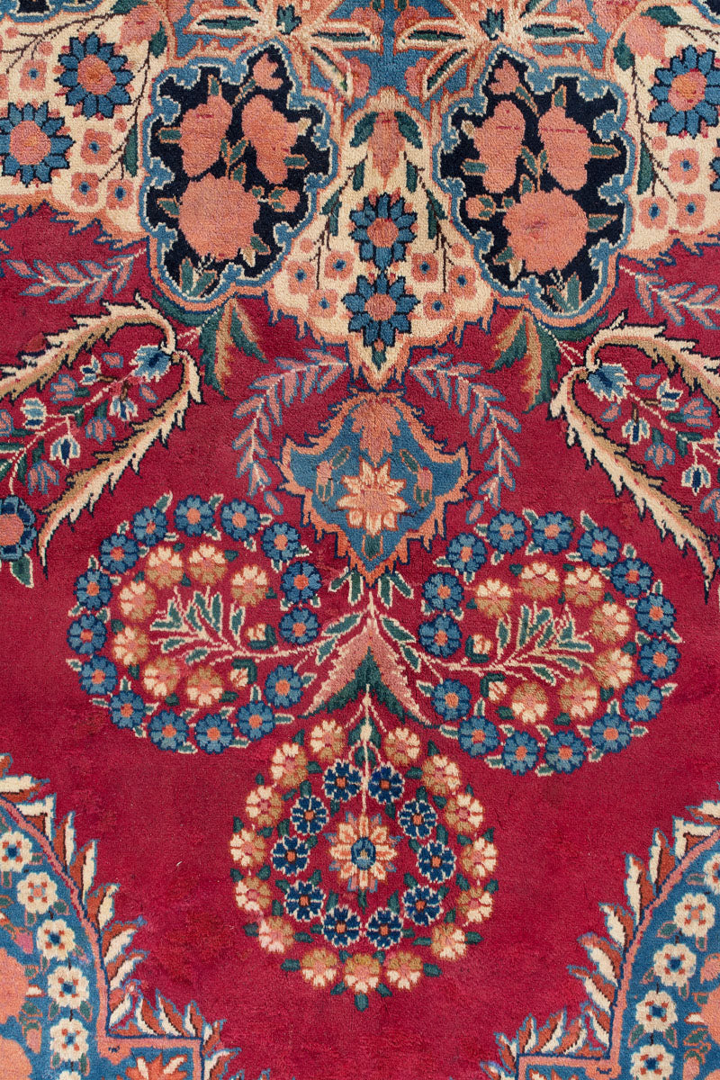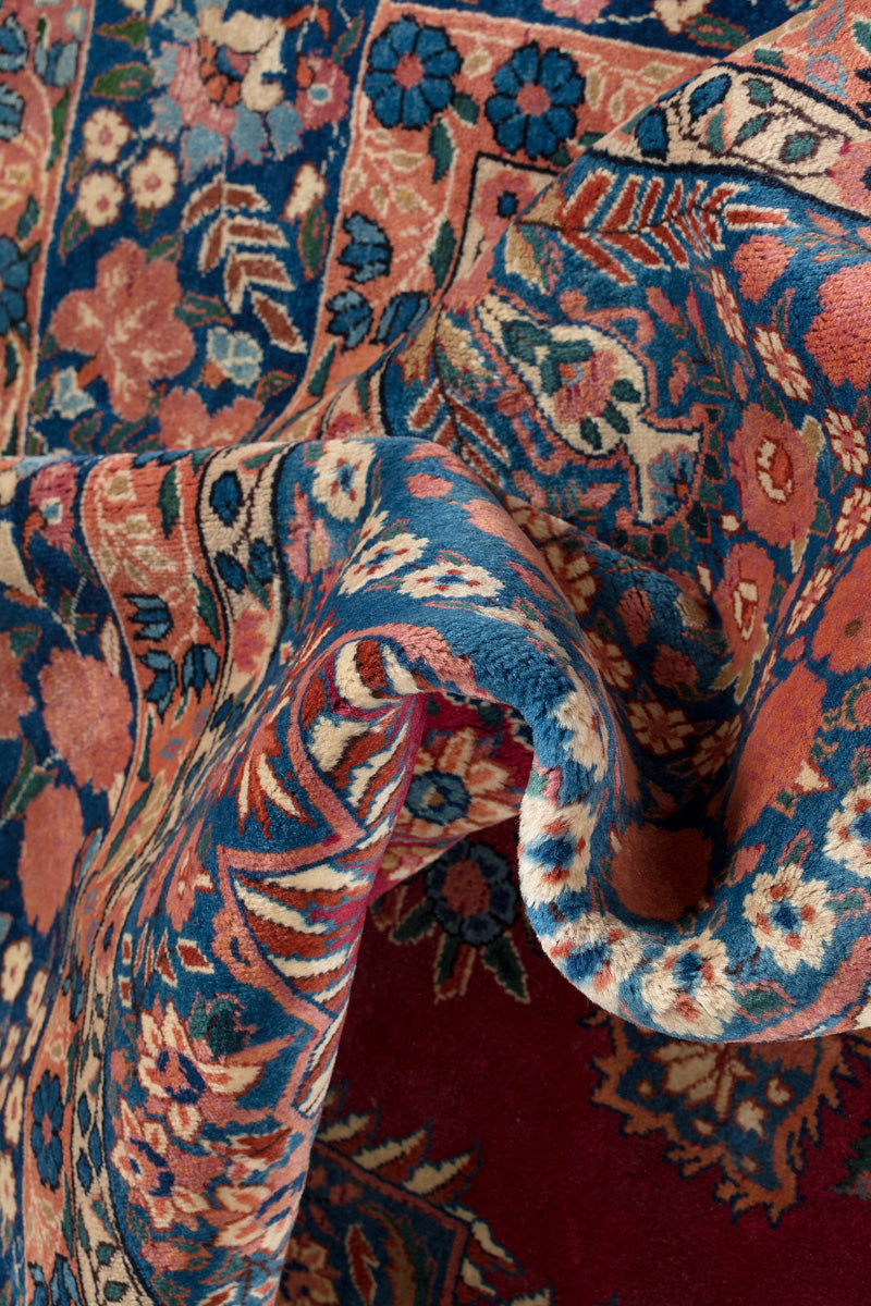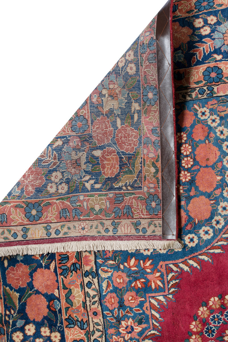 Persian Yazd rugs are celebrated for their fine craftsmanship and beauty. Known for their durability, they are well-suited for high-traffic areas. These rugs often showcase vibrant reds, pinks, and blues, framed by borders in brown, beige, or cream, adding to their visual appeal.