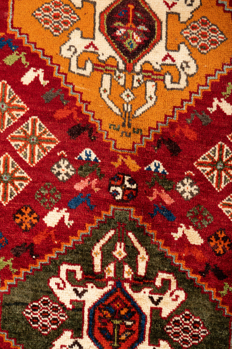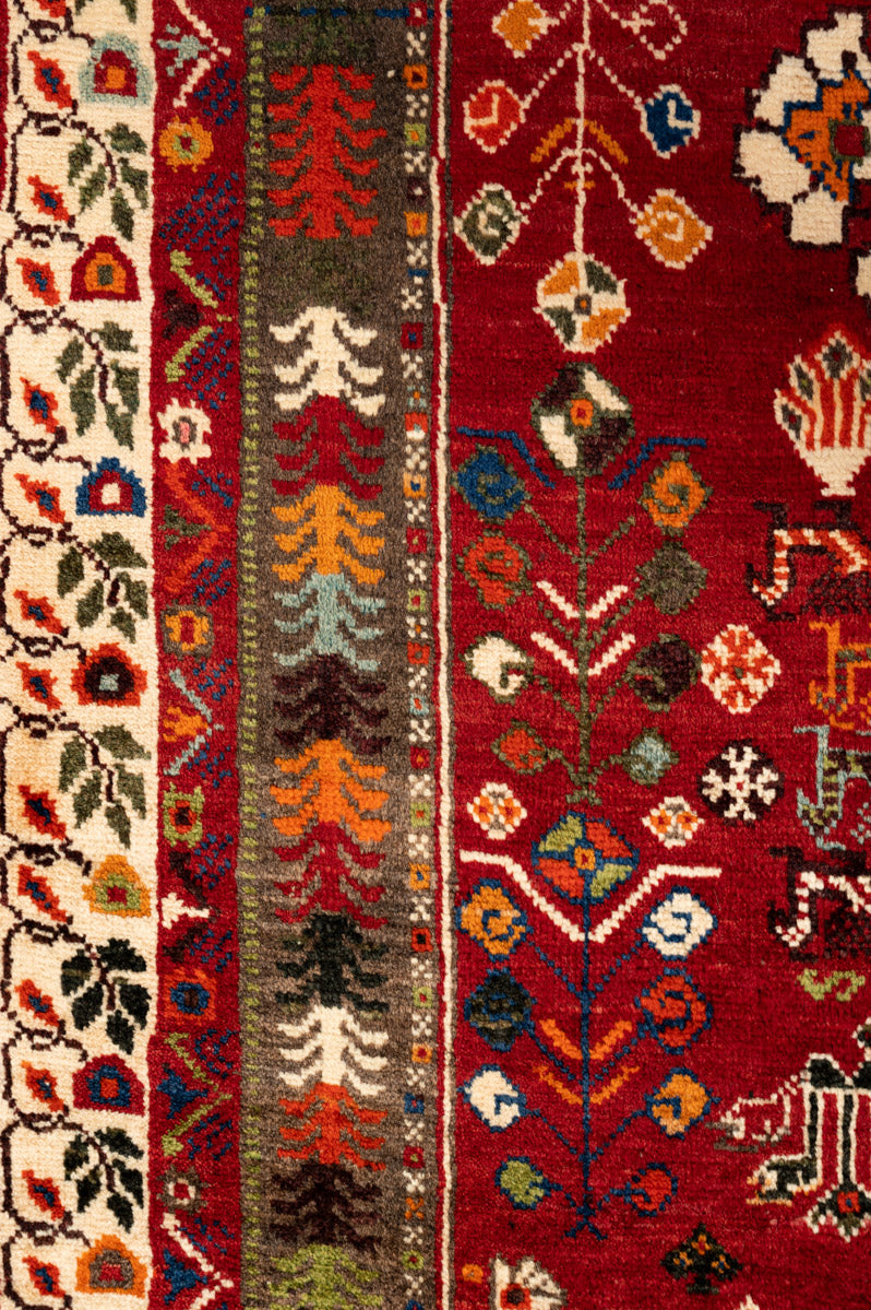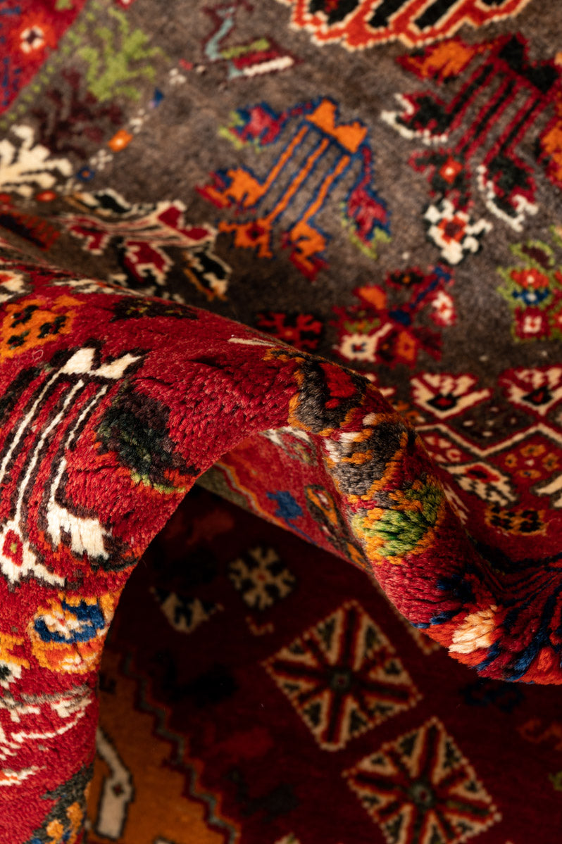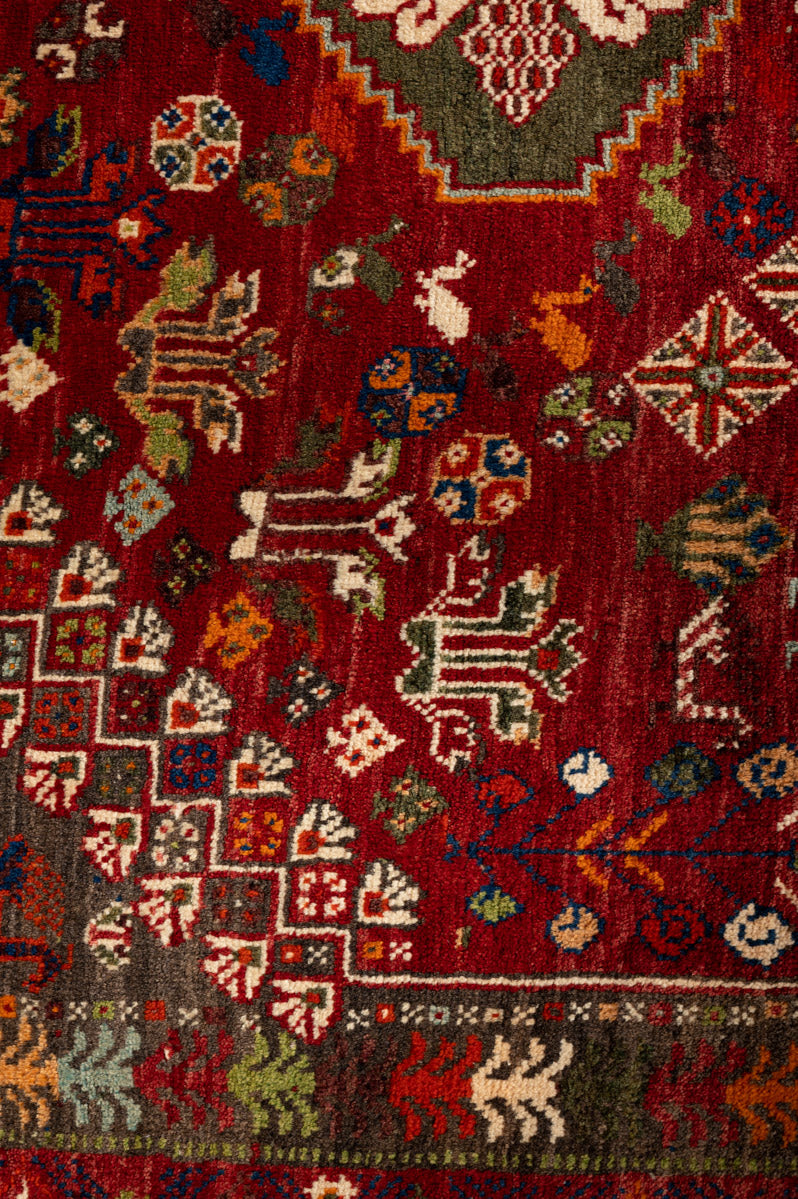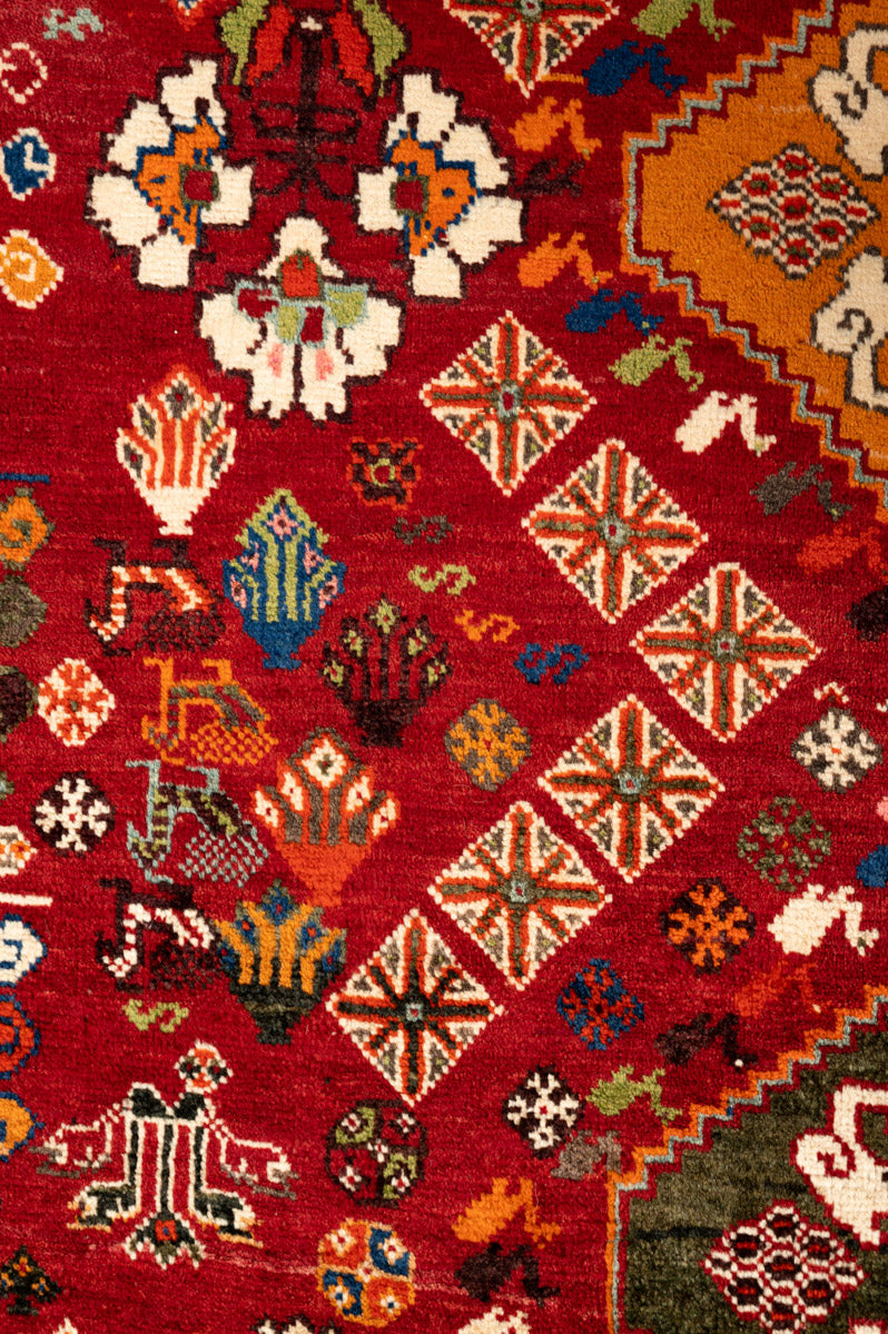 The Qashqai are renowned for their exquisite pile carpets and other woven wool products, often referred to as "Shiraz" due to the city’s historical role as a major marketplace for these rugs. The wool sourced from the mountains and valleys near Shiraz is particularly soft and vibrant, absorbing deep colours that enhance the beauty of each piece. Qashqai rugs are celebrated as "probably the most famous of all Persian tribal weavings," showcasing intricate designs that reflect the rich cultural heritage of the Qashqai tribe.