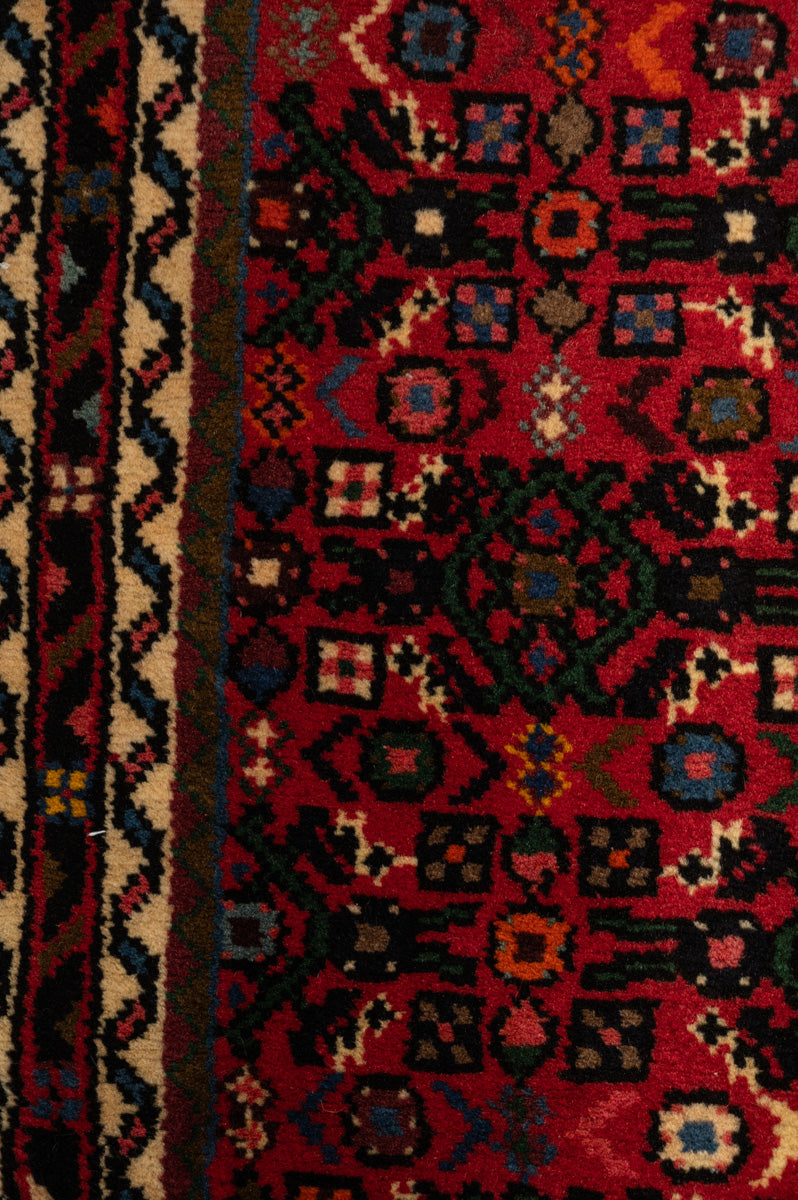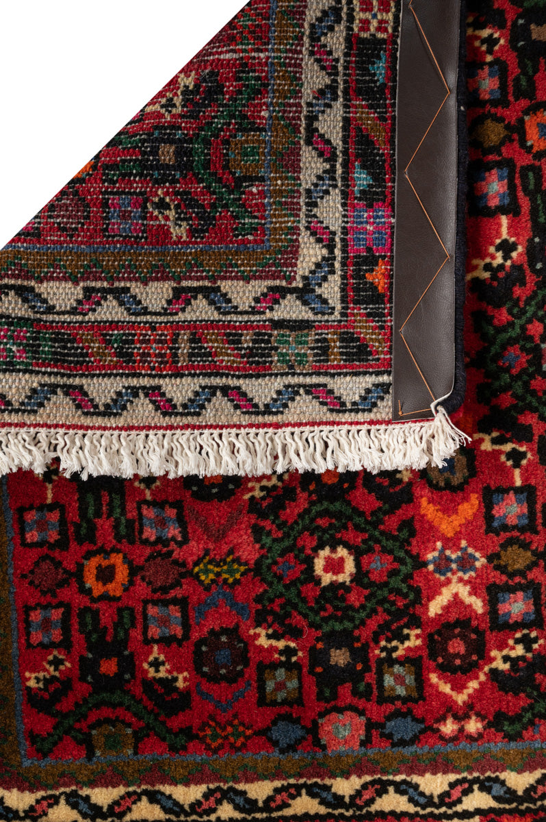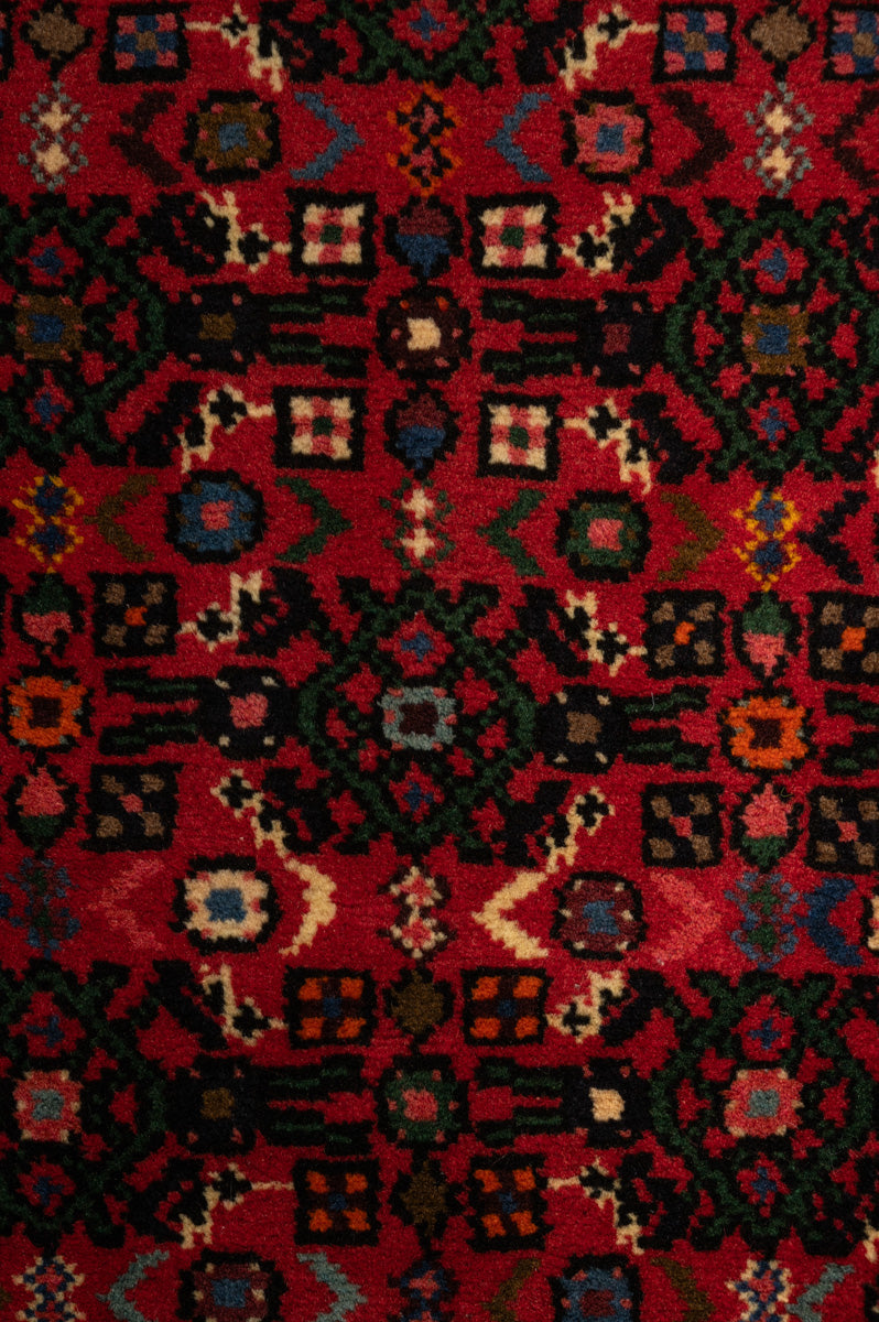 There are hundreds of villages weaving carpets and rugs, it is still very much a cottage industry. Almost all have a wool pile and a cotton warp. Hossein Abad is one of the villages around the Hamadan area. Typically the colours used are deep reds and blues, the majority are geometric but on occasion you will find floral and animal motifs depicting the natural environment of the area.