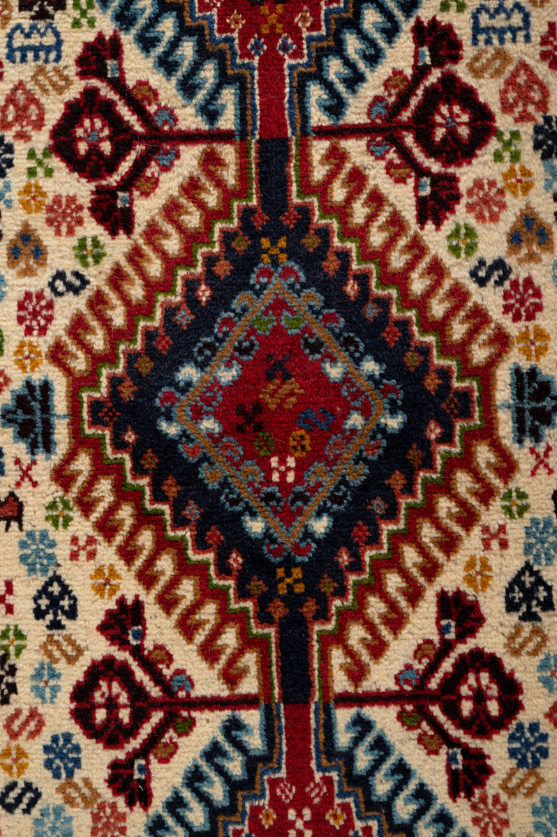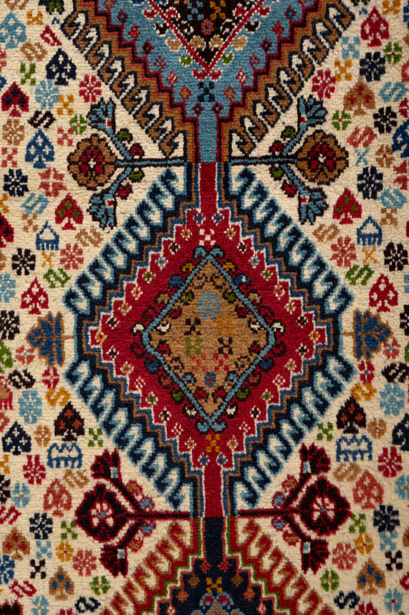 There are hundreds of Persian Villages weaving carpets and rugs all over Iran. Some fine examples are: Yalameh – in the weaving area of Isfahan. A distinctive characteristic for all Yalameh carpets is their warm glowing colour, mainly geometric design. Materials Warp – Cotton,Weft – Cotton and Pile – Wool.